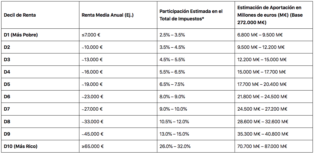 Para definir estos “quintiles” y su nivel de carga fiscal he usado datos de los informes de FEDEA y del INE, de modo que más o menos mis apreciaciones tengan una cierta homologación.