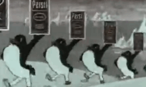 En 1948, el detergente Persil publicita con un anuncio de dibujos animados, en el que un marinero limpia y deja brillantemente blancas las barrigas de unos pingüinos sucios. Cada vez más pingüinos saltan entonces a bordo y corean «¡PERSIL — PERSIL- PERSIL!«… mientras levantan las aletas como brazos muy extendidos. Con el pecho henchido de orgullo desfilan finalmente en formación hacia tierra, cantando con música marcial: «¡Sí, nuestra camisa blanca se la debemos a PERSIL!». Los alemanes, pues, no habían perdido su humor o ya lo habían recuperado.