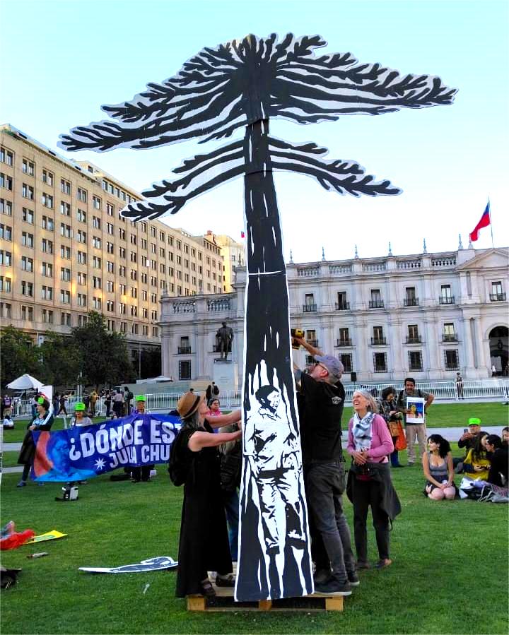 Julia Chuñil Catricura, mujer mapuche, madre de 5 hijos y abuela de 10 nietos, presidenta de la comunidad Putreguel ubicada en la comuna rural de Máfil, defensora ambiental, desapareció el 8/11/2024 junto a su perro Cholito. La investigación de la Fiscalía se ha centrado en sus hijos, y en el entorno familiar de la casa que habitan Jeanette y Javier Troncoso Chuñil con seis violentos allanamientos con presencia de tanquetas y fuerza policial armada. El peor maltrato fue recibido por Jeanette en enero de 2025 cuando tras un allanamiento con orden judicial obtenida con pruebas falsas, sufrió tortura sicológica de parte de un funcionario de Labocar, induciéndola a declararse culpable del crimen, en presencia de la fiscal regional Tatiana Esquivel. Los interrogatorios a los vecinos fueron para preguntar si hubo peleas entre alguno o varios de los hijos, con su madre. La fiscalía omite el rol de defensora ambiental de Julia Chuñil (en adelante JCh). Todas las filtraciones de la carpeta investigativa alimentan un poderoso montaje mediático en contra de la familia en los aniversarios de la desaparición, cuando se realizan actividades de denuncia en Chile y más allá de las fronteras. Actualmente dos manifestantes enfrentan prisión preventiva en Valdivia y se realizan nuevos operativos de represión en los hogares de estudiantes mapuche en Temuco y Valdivia.
