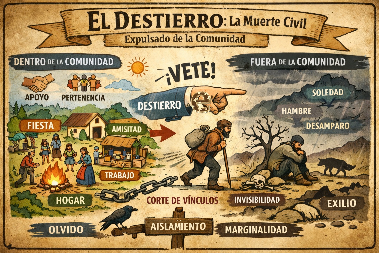 sanciones administrativas modernas) o analogía con figuras históricas, como el destierro medieval o Friedlosigkeit: hoy, cómo en el pasado, los poderes públicos pueden excluir a individuos (personas físicas o jurídicas) fuera de la comunidad política y social, a todos los efectos, En la UE la exclusión se hace mediante sanciones económicas, congelación de activos y restricciones de movilidad, pero bajo un régimen jurídico codificado y vinculante (por ejemplo, las listas de sancionados de la PESC y su ejecución por actos de la Comisión o del Consejo).
