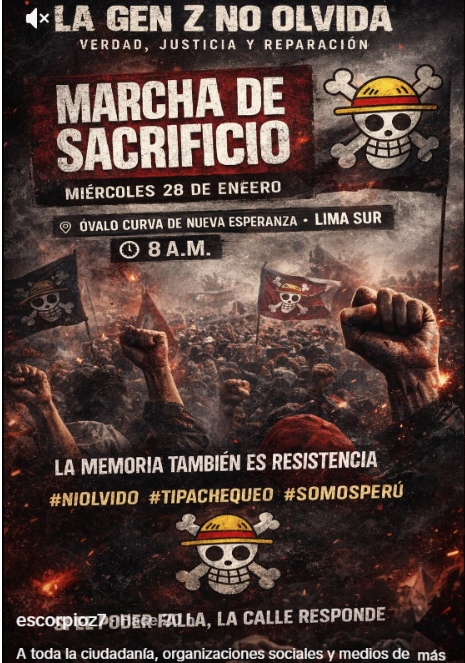 Por su parte el colectivo Ama Sua Llulla Quella respaldó la marcha señalando que: “Somos una juventud y un pueblo consciente de la grave situación que atraviesa nuestro país. Por ello, nos sumamos firmemente a la Marcha de Sacrificio y exigimos justicia para los familiares de nuestros hermanos y hermanas asesinados durante las protestas de los años 2022–2023. El pueblo unido jamás será vencido” dijeron.