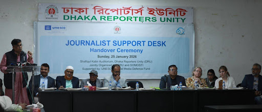 Los comentarios se hicieron hoy (domingo) en el Auditorio Shafiqul Alam de la Unidad de Reporteros de Dhaka (DRU) durante la ceremonia de entrega de un mostrador de apoyo a los periodistas, organizado conjuntamente por los medios de comunicación y la organización centrada en la comunicación Somosti y DRU. Con el apoyo del Fondo Mundial de Defensa de los Medios de Comunicación (GMDF) de la UNESCO, Somosti estableció la mesa de apoyo en el marco del proyecto titulado “Mejoramiento del sistema de apoyo jurídico para fortalecer la protección de los medios de comunicación”, en asociación con periodistas y organizaciones de asistencia jurídica. A partir de ahora, DRU operará el escritorio.