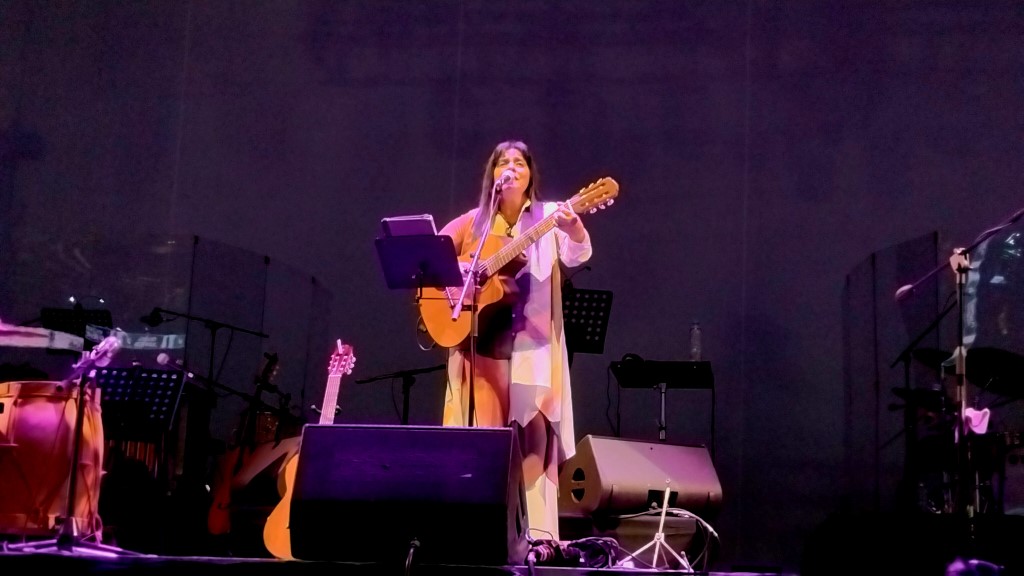 Continuó con “La bondad y su reverso” y le siguieron “Pequeña serenata diurna”, “Nuestro después”, “Cassiopea”, “Tonada del albedrío” y “Eva” que fue cantada por todos.